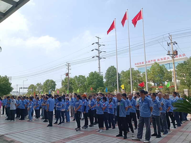 下午13:30,公司全体员工在国旗下合唱国歌《义勇军进行曲》,大家用嘹亮的歌声表达对祖国的崇敬和热爱,祝福伟大的祖国繁荣昌盛!祝福九江赛晶越来越好!