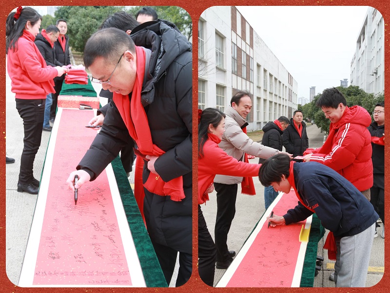 活动开始,全体员工齐聚在新年卷轴前,大家有序地拿起笔,在横幅上郑重签下自己的名字。有的员工下笔坚定有力,仿佛在签下一份对公司的庄重承诺;有的员工则面带微笑,饱含着对未来的期待。每一个签名,都代表着一份责任与担当;每一笔一划,都凝聚着大家对公司的深厚情感。这条写满名字的长幅,成为了全体九江赛晶人携手2025,共进璀璨新篇章的见证,承载着大家对公司新一年的美好祝愿。