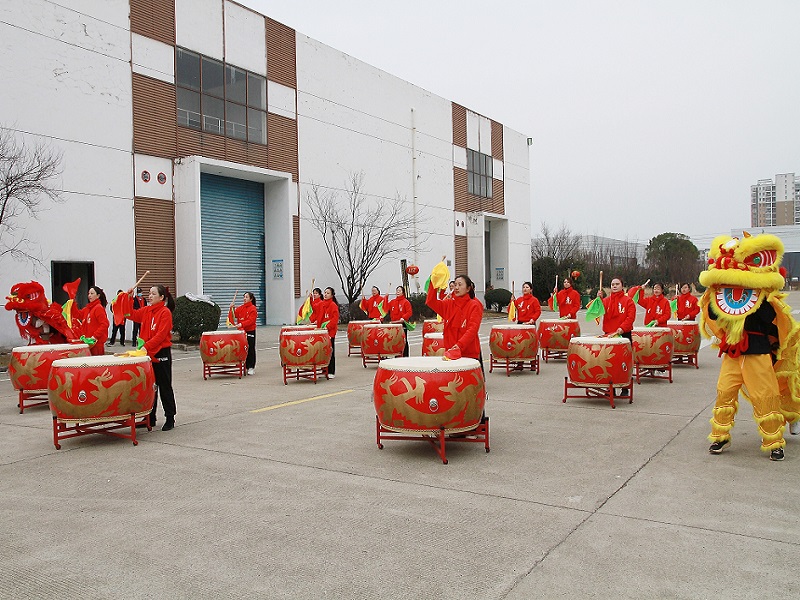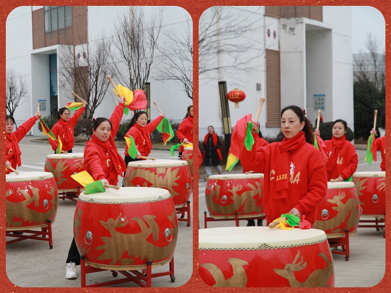 随后的《上春山》,鼓点变得轻快悠扬,如潺潺流水,似春日微风。在这美妙的节奏中,大家仿佛看到了春天的生机与希望,也预示着九江赛晶公司在新的一年将充满无限活力,不断开拓进取,攀登新的高峰。