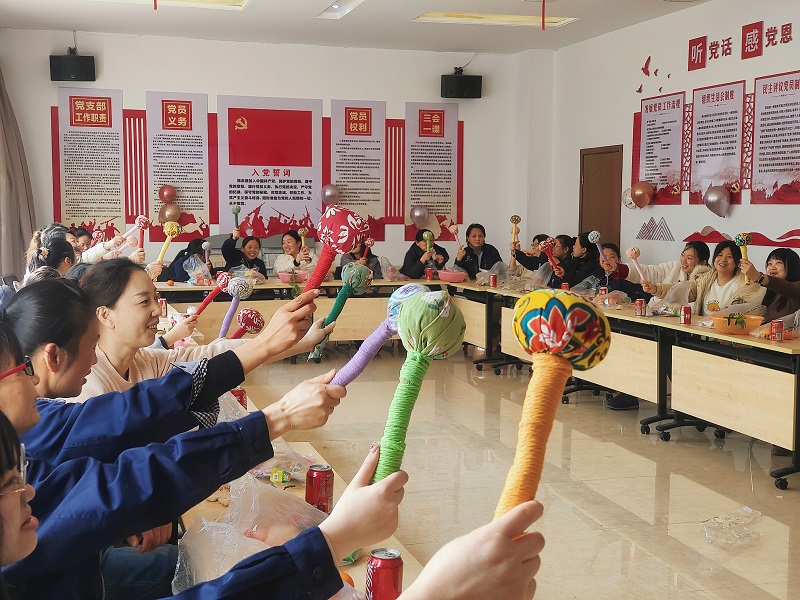 活动当天,公司党员活动室里充满了欢声笑语,一场充满趣味与意义的节日盛宴在这里拉开帷幕。首先开启的是“送健康:做艾草锤锤”环节。活动现场,各类制作艾草锤的材料造就摆放整齐,准备就绪。女员工们围坐一起,一起研究艾草锤的制作方法,每一个步骤都细心研究,大家纷纷动手尝试。在制作过程中,大家相互交流、互相帮助,现场气氛十分融洽。不一会儿,一个个饱满、散发着艾草清香的艾草锤在大家手中诞生。拿着自己亲手制作的艾草锤,女员工们脸上洋溢着自豪的笑容,纷纷表示这个健康礼物既实用又有意义,以后工作累了就可以用它来缓解疲劳。